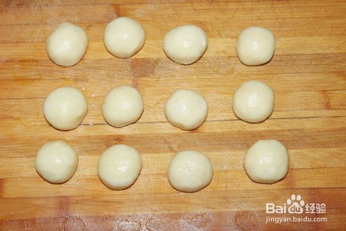 将水油面团和油酥面团分别分成小剂子揉圆,再饧10分钟。