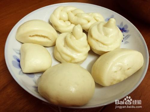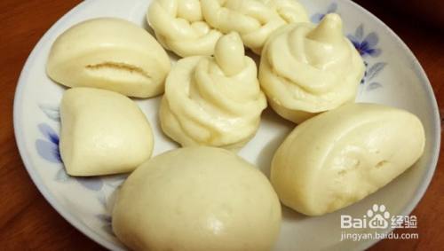 把面团拿出来,加入适量的面粉再揉,一边揉一边加面粉,直至面团柔软且不粘手,大概需要15分钟的时间。切忌不要到太多面粉,否则会影响二次发酵,进而影响口感!把揉好的乳白色面团分成不等分,做出自己喜欢的形状,注意,二次发酵后,蒸出来的面包,会比原来的膨胀1倍,所以做的时候最好小巧一点。