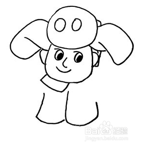 然后画出他大大的棉帽,还有他的耳朵在衣服的缺口处画出他的手臂。