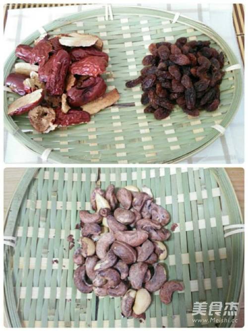 2红枣,葡萄干洗净备用,腰果去皮备用