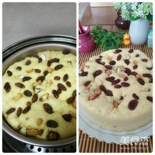 9一锅两样的发糕上桌了。喧软劲道有咬头。