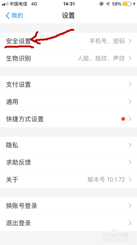 在设置界面,点击“安全设置”选项,进入安全设置界面;