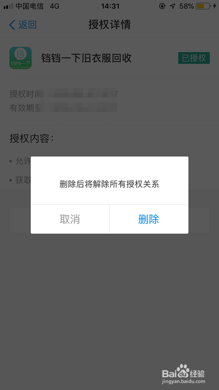 进入授权详情界面后,点击【解除授权】按钮——“删除”,完成授权的解除。