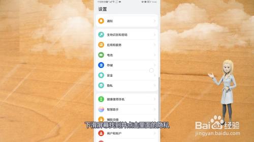 进入华为手机设置界面后,下滑屏幕找到并点击里面的隐私。