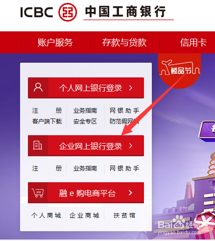 直接搜索对应的银行,比如【中国工商银行】,点进出现的官网。