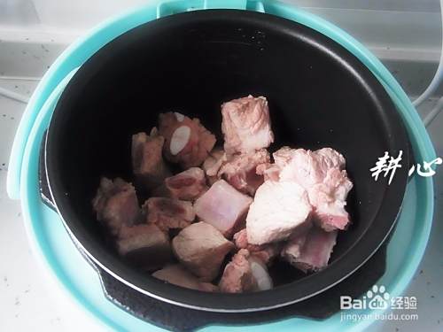 洗净后的肋排放入电压力煲内胆中。
