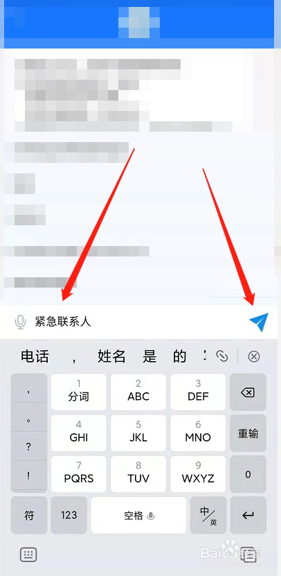 输入【紧急联系人】,点击发送