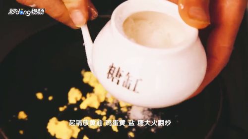 5起锅放黄油,鸡蛋黄,盐,糖大火翻炒,放炸好的南瓜翻炒均匀即可。