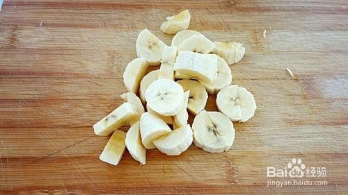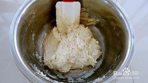 把打发好的蛋液倒入香蕉面糊中翻拌均匀。