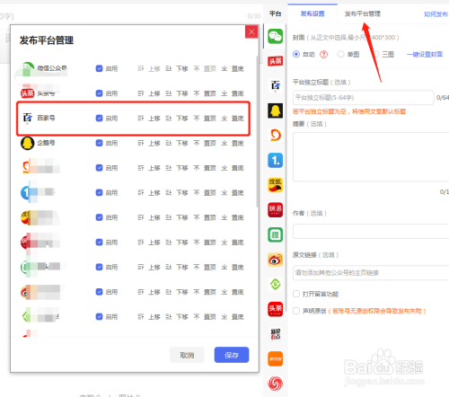 点击右侧发布平台管理,勾选百家号平台再点击发布即可