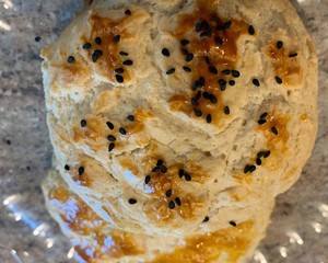 搅拌均匀,分成多个小份,放入烤盘,刷上蛋黄液。