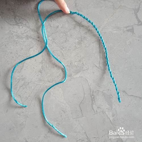双手抓住绳子的两边,向两个方向搓转成麻花状