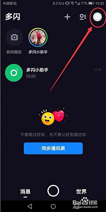 首先打开手机多闪app进入到首页,然后打开右上角的个人头像,如下图