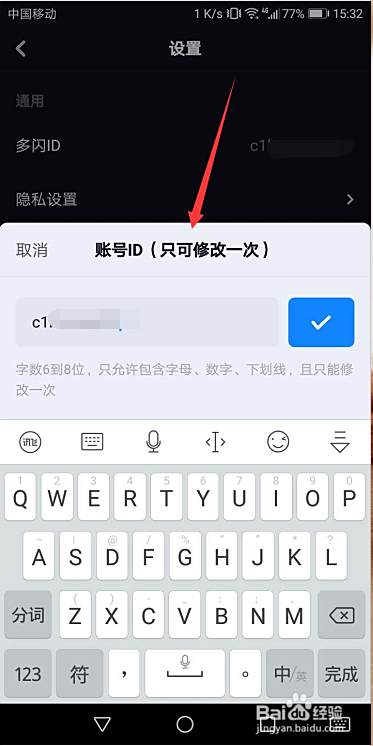 点击打开多闪ID,然后会转到ID编辑页面,ID账号只可修改一次哦,如下图