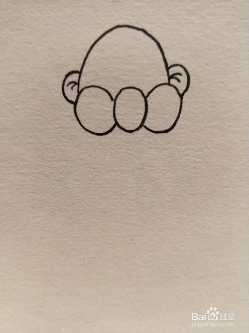 接着在上方画出一个稍大的半圆,侧面画出耳朵。