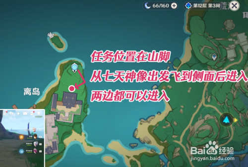 任务位置是在山脚下,因此从七天神像出发需要先飞到侧面山脚,然后进入内部。