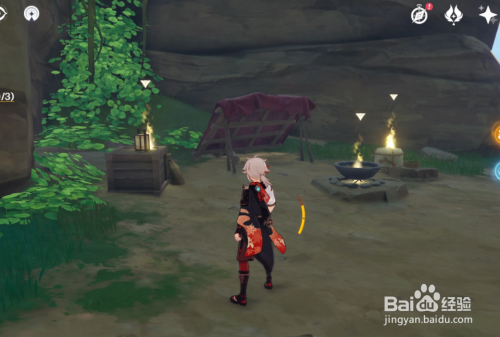 派蒙提议我们回去看一看,再次回到出发点的营地,我们分别对营地中的三个调查点进行调查。