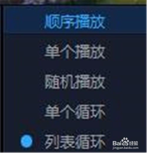 之后弹出播放的下拉列列表,里面是播放方式和种类的相关设置,我们点击“播放顺序”