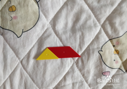 放上黄色小三角形,右侧放上平行四边形挨着,如图。