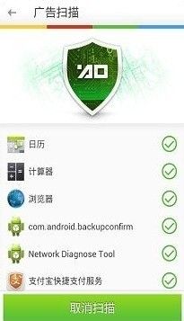 通过手机中的安全大师扫描出来的结果,我们在扫描的结果中可以看到含有广告的软件,