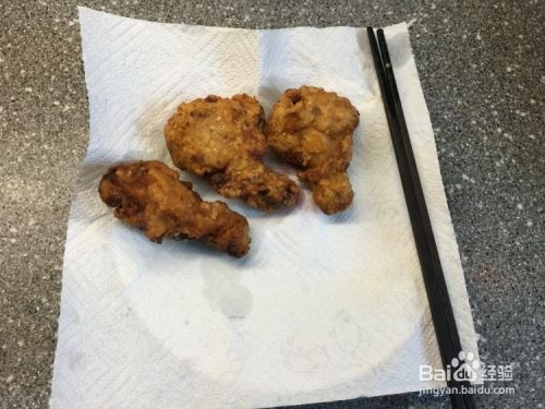 炸至金黄色捞出,用吸油纸巾吸取表面多餘的油即可。