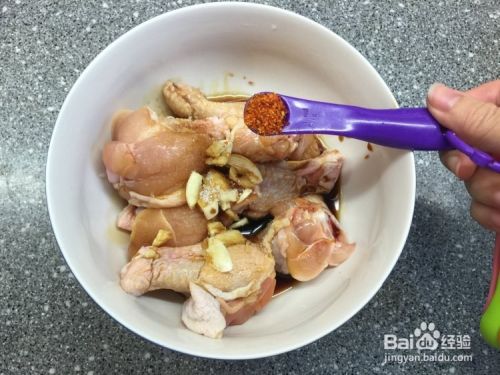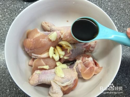把蒜头和酱油放进鸡翅根碗里。