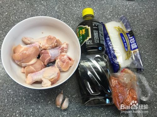 準备材料,鸡翅根洗净,蒜头拍碎。