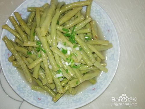 把豇豆从锅里盛起来,放入盘中。