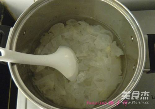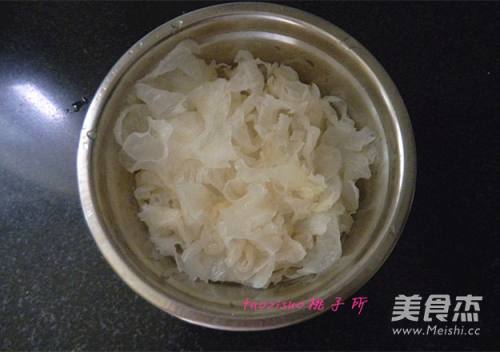 2将银耳充分泡发(可以提前一晚浸泡),撕成小朵;