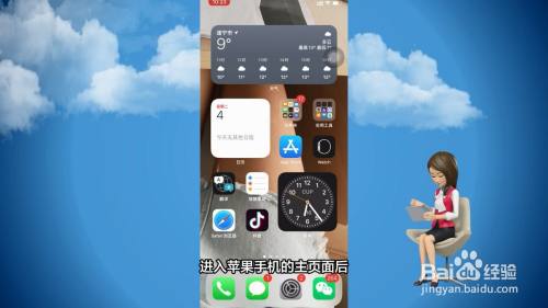 进入苹果手机的主页面后,按住下方屏幕的底端。