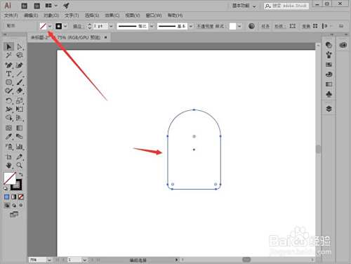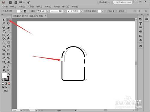 选择直接选择工具,选中三个锚点的中间锚点,并按Delete键进行删除。