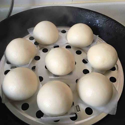 13放入馒头,中火蒸六到七分钟,关火打开锅盖即可END