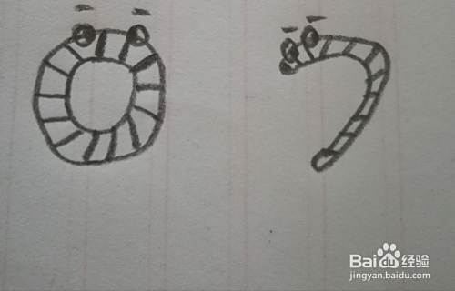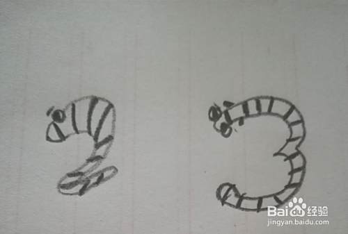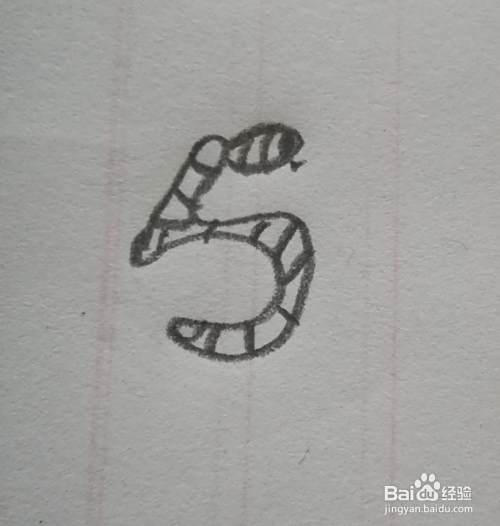 将头部画出眼睛和简单的眉毛,将身体全部使用条纹填充,这样整个形象看起来就像是一个调皮的毛毛虫,整体来看又是一个数字。