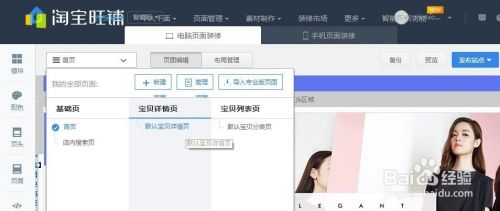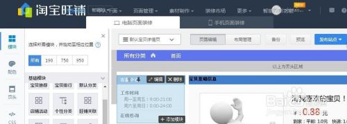 打开店铺装修页面,点击“页面装修”字样后选择“电脑页面装修”