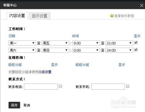 在客服中心模块的右上角单击”编辑“按钮,然后在打开的对话框中将工作时间改为与自身情况相符合的时间