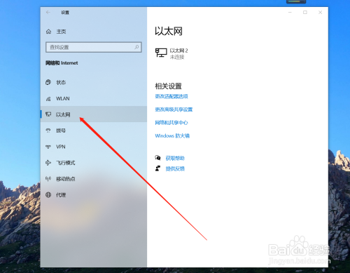 选择左侧菜单栏中的“以太网”