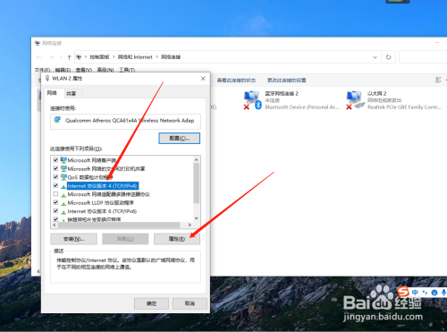 选中“Internet协议版本4(TCP/IPv4)”,再点击属性