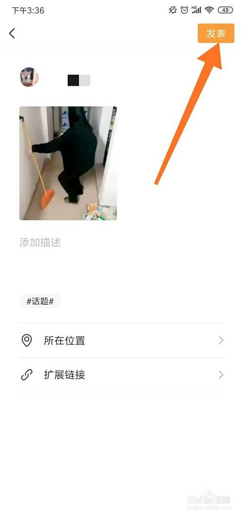 选择好视频后,我们编辑描述内容,点击右上角的发表;