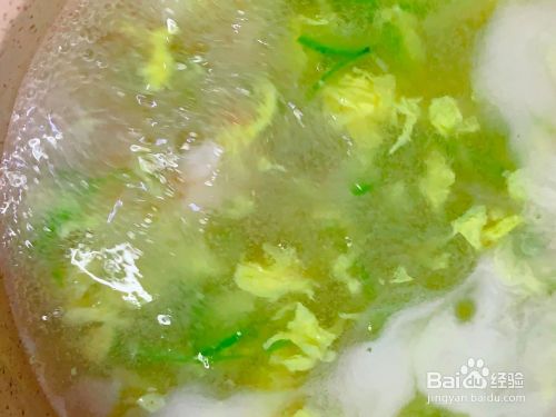 煮至鸡蛋液浮起来,倒入虾仁。
