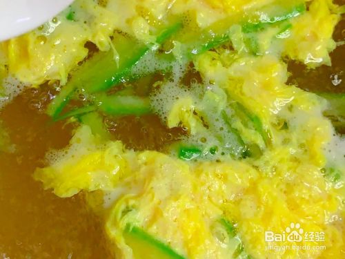 淋入提前打散的鸡蛋液,搅匀。