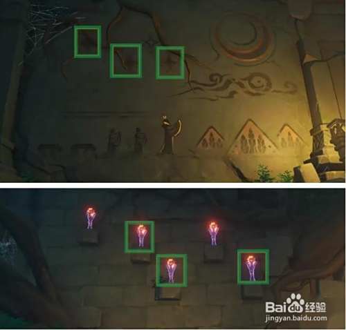 根据上面壁画的提示,只需要点亮下图这三个火把即可!