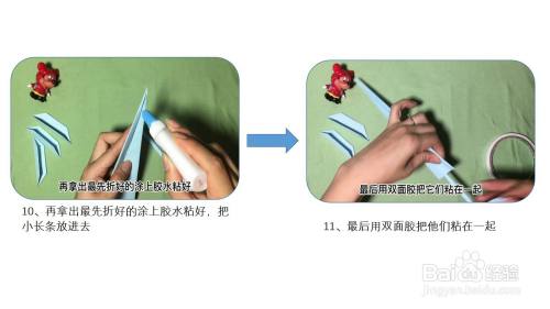 再拿出最先折好的涂上胶水粘好,把小长条放进去,最后用双面胶把他们粘在一起。这样一个厉害的暗器就折好了。