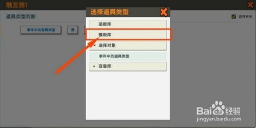 6.仅仅这样还不没完全设置好,条件下面绿色的框框,现在显示有红色的点点。点开绿色的框框。道具类型这里的字是红色的,我们点这里。选择道具类型,找到模板库。道具库里面在消耗品这里找到萝卜,之后点击确定就OK了。
