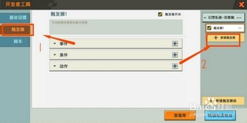 3.打开右上角小地图旁边的开发者模式,开发者模式里面找到触发器,选择新建触发器
