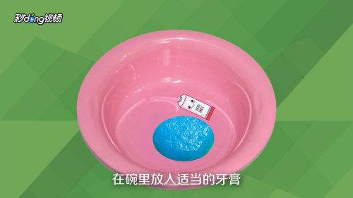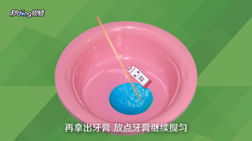 拿出碗,在碗里放入适当牙膏,再放入适量胶水,用木棍搅匀。