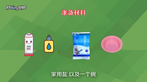 准备材料,牙膏、胶水、家用盐以及一个碗。