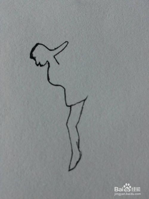 然后我们把线条从后面往上画出另一只翘起的脚来,注意在膝盖哪里的时候有个弯曲的回收。
