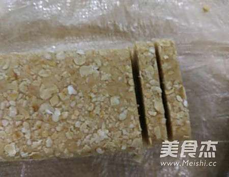 8在冰箱取出燕麦饼干,用刀切成0.5cm厚一个。