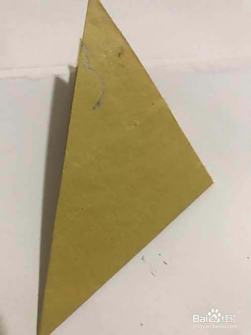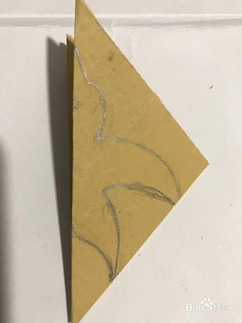 第三步 左下角与右上角对折好之后 再调整一下合适的位置 九十度的角放在右边 然后用笔在上面的尖角部分开始画上小鸟的嘴部和头部的外线轮廓