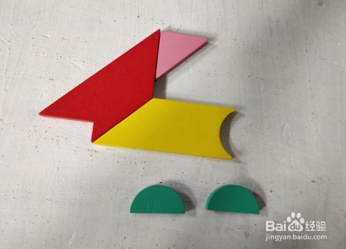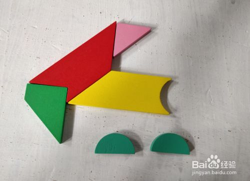 在红色形状的下面,放上绿色梯形挨着,如图。